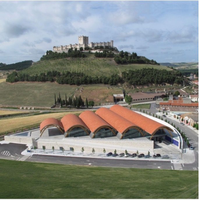 Bodegas Protos, designed by Rogers Stirk Harbour + Partners and Alonso Balaguer y Arquitectos Asociados, is considered a masterpiece of the 21st century. It is located at an interesting intersection of historical paths: the extension of the Camino de las Eras and the merino drove of San Pedro, an ancient Roman road. It is also situated very close to the old winery facilities, excavated in the hill of Castillo de Peñafiel, with which it is connected underground. The most striking visual element of the winery from the outside is its roof. This is due to the exceptional location of the winery at the foot of Castillo de Peñafiel. The project considered the building’s roof as another façade, to be appreciated from the privileged position offered by the Castle, hence it has been designed in the form of those five vaulted bays that face the Castle. Each of the two constituent elements of the building, the base and the lightweight envelope, has its own characteristics, depending on the use to which they are destined. The design of the building is based on a physical structure, construction systems, and installations that seek to generate optimal conditions for the wine production process. Central to this design is the attempt to maximize the potential of the site for the natural generation of these conditions. Most of the facilities for wine production and maturation are buried in the ground.